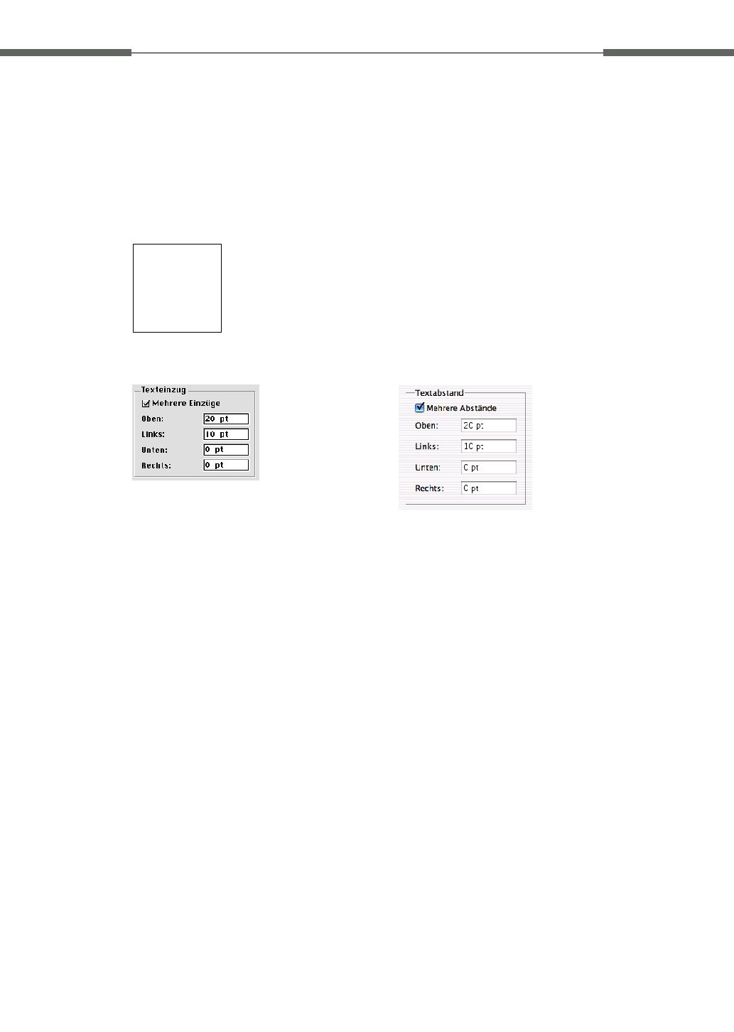 erzeugt einen Textrahmen mit einem linken Einzug von 10 und einem oberen Einzug von