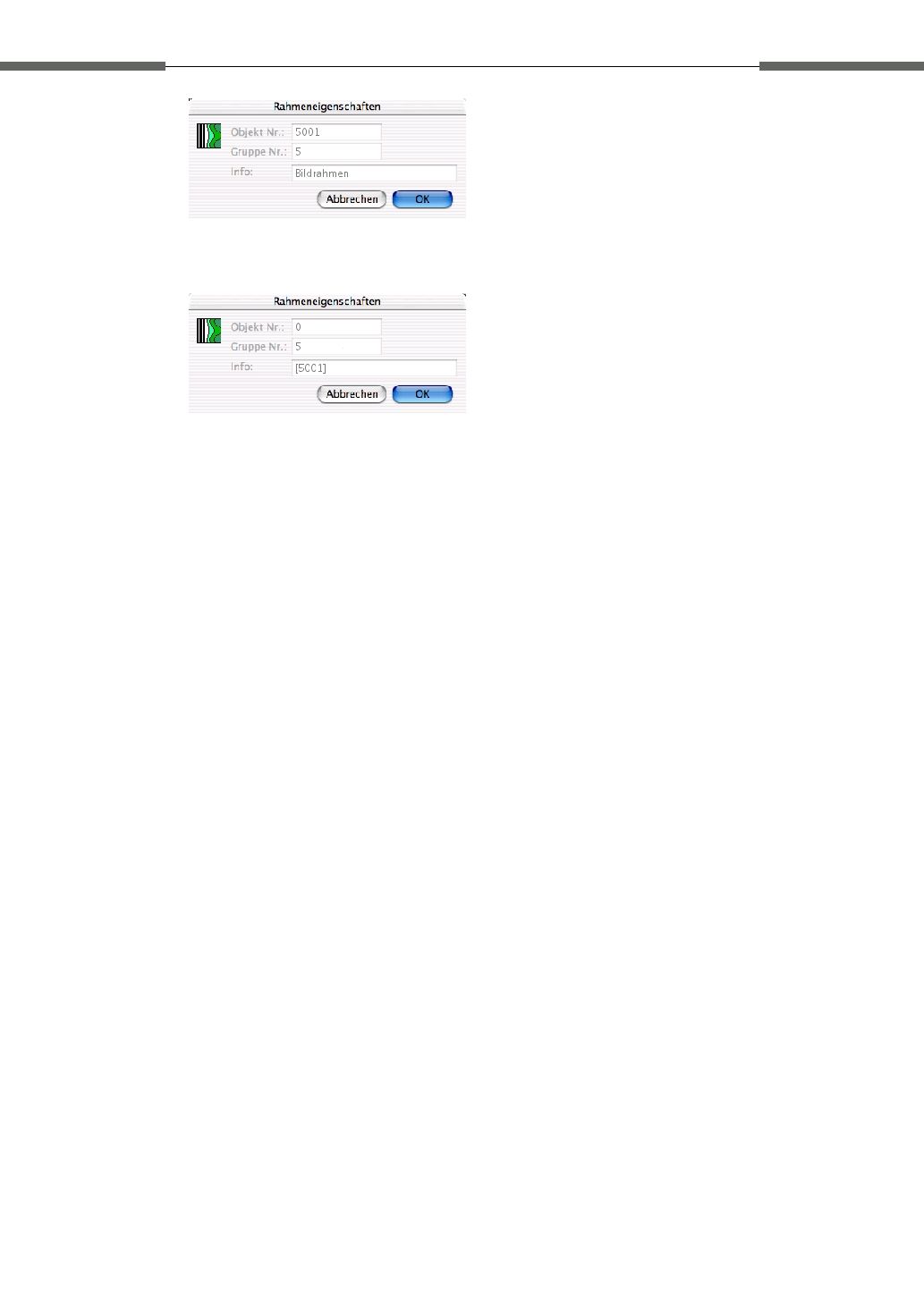 Die Gruppen-Nr. des Rahmens, sowie alle anderen Eigenschaften des Rahmens,