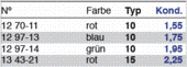Eine weitere Tabelle des Artikels. Sie wurde in einen Zusatztextrahmen eingegeben, automatisch formatiert und erscheint in einem weiteren Rahmen in QuarkXPress oder InDesign. |