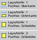 Layoutzeilen werden von DATAform bei der Layoutoptimierung automatisch erkannt und eingehalten. Nach der Optimierung eines Artikels zeigt der DATAform-Dialog für Rahmeneigenschaften an, welche Zeilenzuordnungen getroffen wurden. Für die vier Objekte des Beispiels werden diese Positionen angezeigt: |