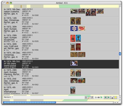 Nach dem Suchen kann man einzelne Artikel oder Bereiche noch gezielt nachselektieren. Befehl wie Drucken, Exportieren, oder die Plazierung QuarkXPress beziehen sich immer auf die aktuelle Artikelauswahl. |