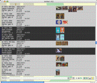 Die Artikelliste zeigt die derzeit (z.B. nach einem Suchvorgang) ausgewählten Artikel. Auch in der Artikelliste werden alle Bilder der Artikel als kleine Miniaturen angezeigt. Ein Doppelklick auf einen Artikel öffnet ihn in der Eingabemaske. |