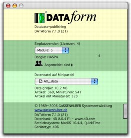 Die DATAform Datenbank ist als Einplatzversion und als Client/Server-Lösung für MacOS, Windows sowie für gemischte Netze verfügbar. Mehr hierzu