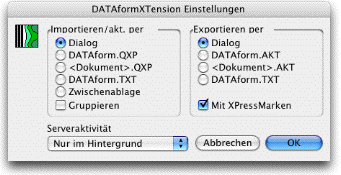 4) Wählen Sie im Satzprogramm im DATAform-Menü den Befehl „Einstellungen...“ und dort „Importieren per Dialog“ in der linken Spalte.