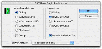 Choose the "Preferences..." command of the DATAform menu in the layout program and then "Import via... Dialog" in the left column: