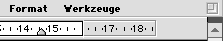 - Wählen Sie zweimal den Befehl Editor/Menü und Lineal, sodaß das kleine Menü des Texteditors über dem Lineal erscheint.